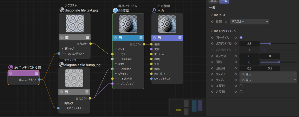 このノードを介してテクスチャをタイリングすると,個々のテクスチャに同一の,あるいは異なるタイリングを適用し,それらをブレンドするなどが簡単になります.