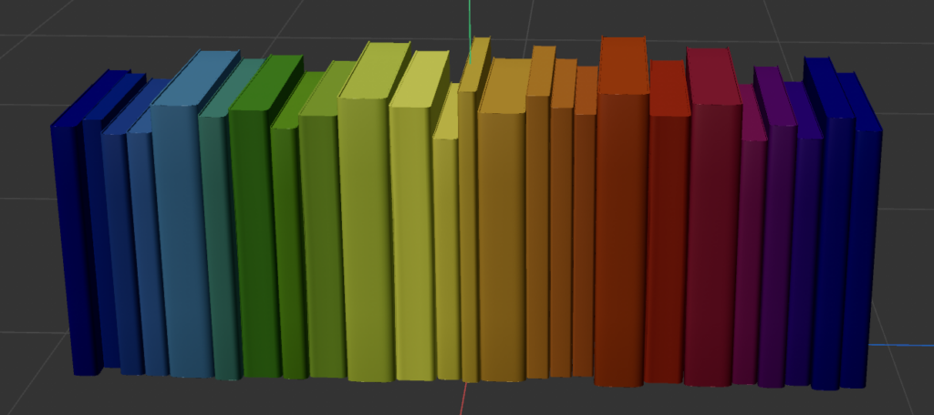 サイズの異なるオブジェクト(例:様々な厚さの本)でも,完全に垂直・水平に積み重ねることができます。さらに「積み重ねたい総量(例:高さ40cm)」を指定するだけで自動で個々のオブジェクトの配置を調整してくれます.軸の方向,スケールのランダマイズもでき,エフェクタなしでスケールの異なるオブジェクトをスタック複製配置できます.