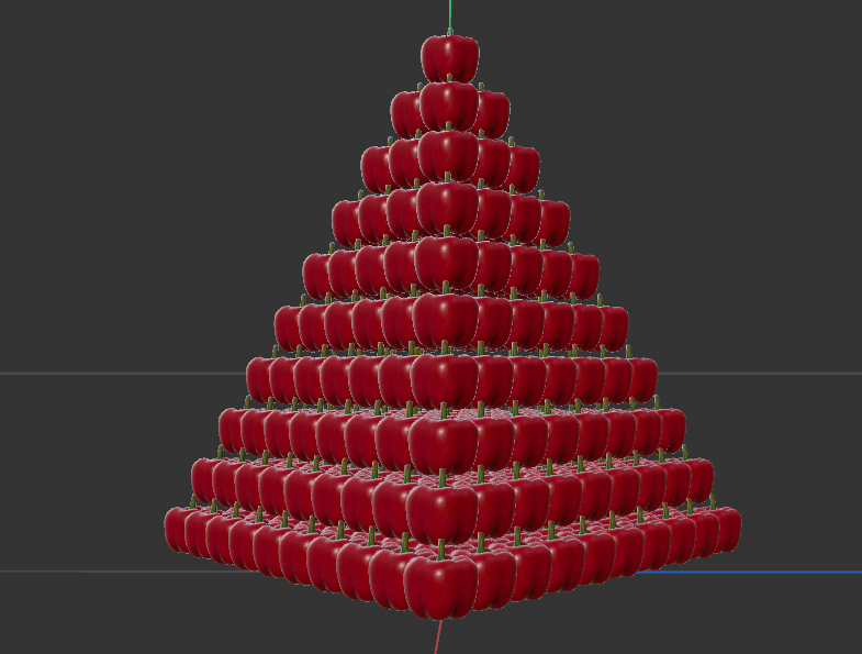 大砲の玉や缶詰,ボールなどを隙間なくピラミッド状に積み上げる配置をワンクリックで生成します.オブジェクトのサイズ調整にも追従するため,手作業で調整する手間が一切ありません.