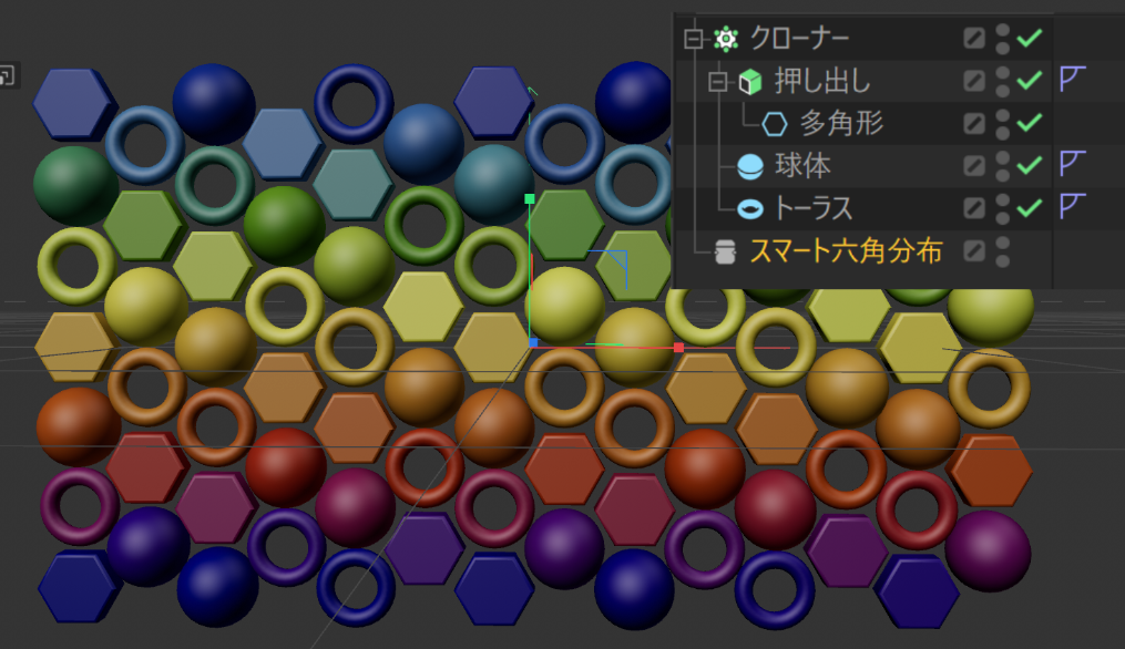 今回のMoGraphのハイライトは,オブジェクトの「サイズ」を自動で認識して配置する新しい分布システムです.従来の分布では難しかった配置ができるようになりました.